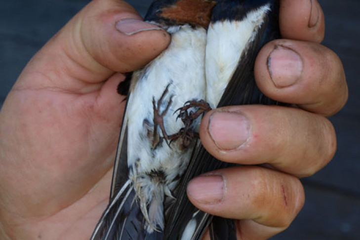 «В районе Новосибирска встречаются ласточки трех видов, — продолжает Яновский. — деревенская (или касатка), городская (воронок) и береговая (береговушка). Несколько лет назад орнитологи обнаружили у реки Ини гнездовое поселение еще одного вида — бледной береговой ласточки".