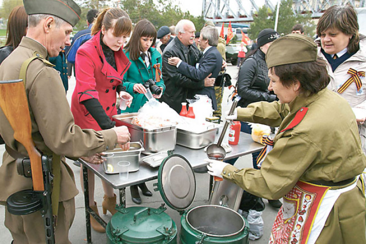 Открытие навигации состоялось в преддверии юбилея Победы в Великой Отечественной войне, поэтому гостей праздника ждали не только речи с трибуны о положении дел в отрасли, но и парад курсантов Новосибирского командного речного училища имени Дежнева, парад судов, а также выставка ретро- автомобилей и полевая кухня. Гречки, сдобренной тушенкой, хватило всем желающим. Образ уставшего, проголодавшегося воина не примерил на себя в тот день только самый ленивый. У печки на колесах то и дело возникали стихийные песни и танцы, и даже молодые девушки пели «Катюшу».