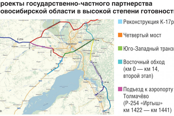 Так, в случае с четвертым мостом через Обь процесс поиска концессионеров уже запущен и, как отметил губернатор Новосибирской области Владимир Городецкий, завершится до конца 2015 года. Чтобы ускорить подачу заявки на федеральный грант, генерального концессионера определят уже летом. В 2016-м планируется приступить к строительным работам. Они продлятся согласно проекту до 2020 года.