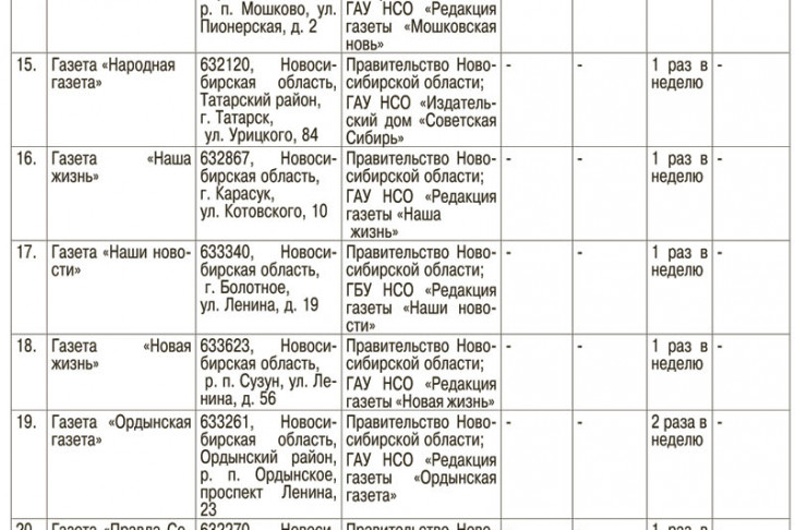 Перечень региональных государственных организаций телерадиовещания и региональных государственных периодических печатных изданий, которые в соответствии с частью 5 статьи 55 Закона Новосибирской области от 15 февраля 2007 года № 87-ОЗ «О выборах депутатов Законодательного Собрания Новосибирской области» обязаны предоставлять эфирное время, печатную площадь для проведения предвыборной агитации зарегистрированным кандидатам на выборах депутатов Законодательного Собрания Новосибирской области шестого созыва
