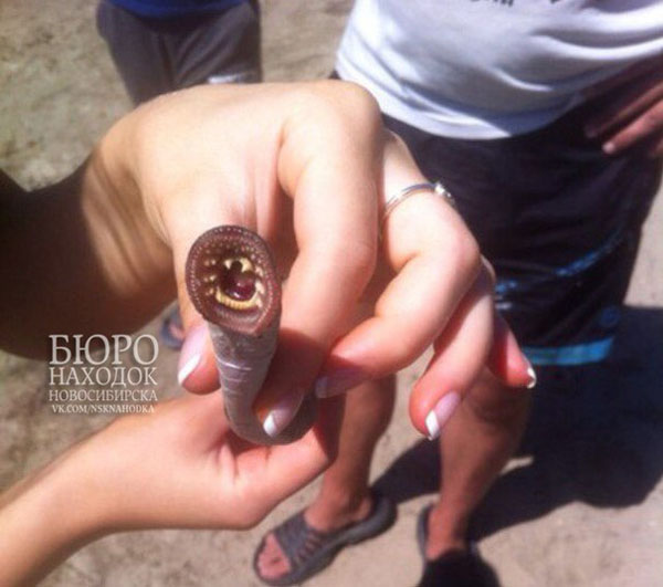 Сегодня паблик Бюро Находок Новосибирска «ВКонтакте» сообщил о необычном «звере», которого поймал один из новосибирских рыбаков на выходных. «Оказалось, что это минога речная, — говорится в сообщении группы. — Эти рыбы питаются детритом, речным планктоном и другими мелкими водорослями, но могут потреблять также мелких червей и ракообразных. Пресноводные особи для людей не опасны, а вот морская минога может болезненно укусить».