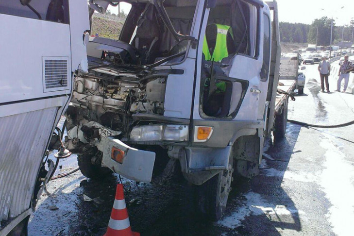 В субботу, 27 июня, в Советском районе на Бердском шоссе 26-летний водитель самогруза Hino Ranger, двигавшийся со стороны проспекта Строителей в сторону улицы Лесосечная, совершил столкновения с автобусом «ГоЛАЗ». Как сообщил руководитель пресс-службы ГИЮДД Новосибирска Сергей Страдымов, автобус с 53 пассажирами ехал из Барнаула.