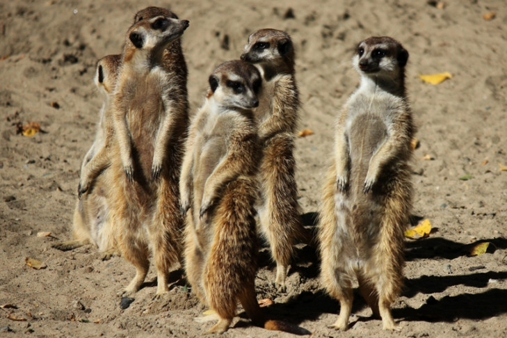 «Сейчас в зоопарке наступает время, когда практически все малыши в дневное время постоянно находятся на улице, — продолжает Евгения Пирожкова. —  У сурикат (на фото) подросли четверо малышей. Вместе со взрослыми они любят греться на солнце. Все чаще выходят на прогулки барсучата, скунсы и канадские волчата. Это очень бойкие, активные малыши. Когда они бодрствуют, никто не скучает».