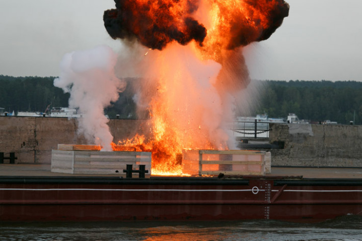 Отступая, диверсанты взорвали часть груза на барже. Начался пожар, произошел разлив нефти. Огонь потушили с пожарного катера. Разлив ликвидировали аварийно-спасательные подразделения специализированных компаний.