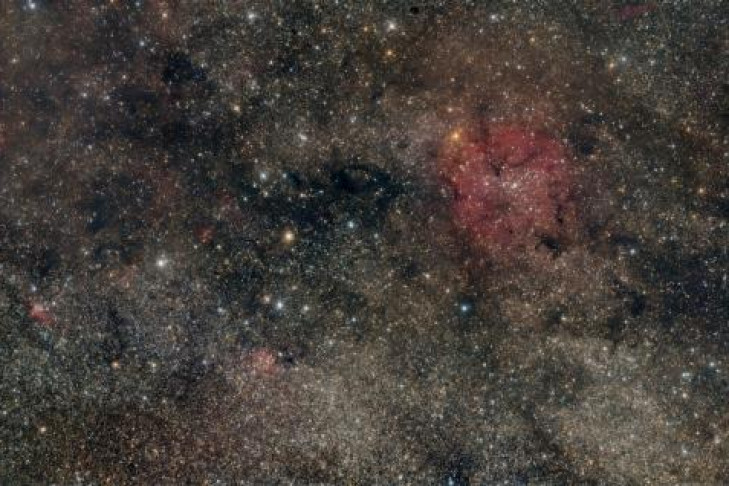 Нынешняя фотография была сделана во время ночных наблюдений, прошедших в рамках Сибирского астрономического форума. Евгению Тихонову удалось запечатлеть эмиссионную туманность под романтическим названием IC 1396, которая находится в созвездии Цефея. Как сообщили в Планетарии, туманность IC 1396 расположена на расстоянии трех тысяч световых лет от Земли. Это область звездообразования богата темными пылевыми облаками.
