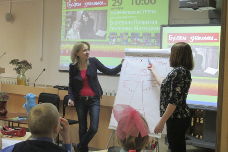 Известные питерские сказочницы, иллюстраторы собственных книг, работающие в соавторстве вот уже более десяти лет, встретились с юными новосибирцами в областной детской библиотеке имени Горького. Четвероклашки приняли участие в мастер-классе — придумали фантастического героя, нарисовали картинку в стиле «держим листок на голове», а также узнали много нового о технологиях дополненной реальности.