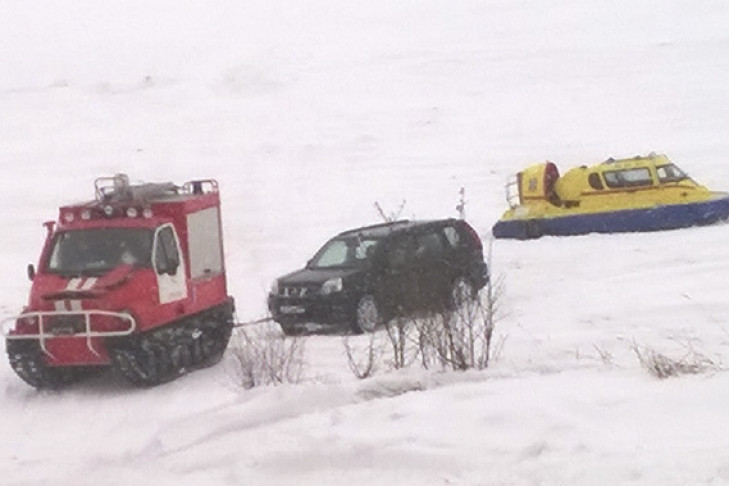 Рыбаков, застрявших в метель на Обском море, пришлось вызволять всем миром.