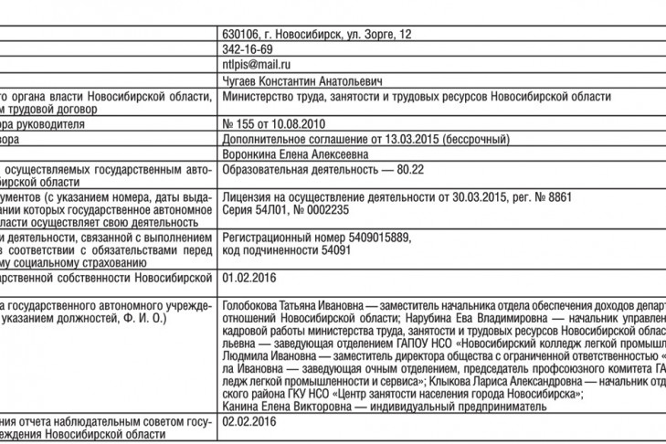Отчет о деятельности государственного автономного профессионального образовательного учреждения Новосибирской области «Новосибирский колледж легкой промышленности и сервиса» за период с 01.01.2015 по 31.12.2015 и отчет об использовании имущества, закрепленного за государственным автономным профессиональным образовательным учреждением Новосибирской области «Новосибирский колледж легкой промышленности и сервиса» за период с 01.01.2015 по 31.12.2015