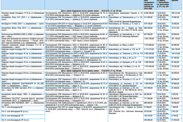 Организатор торгов — поверенный Территориального управления Росимущества в Новосибирской области общество с ограниченной ответственностью «АТМ-ГРУПП» — сообщает о проведении торгов в форме открытого аукциона по продаже арестованного имущества от 02.03.2016