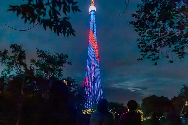 Праздничный сценарий 1 мая будет работать ровно один час — с 22:00 до 23:00. В последующие дни, 2 и 3 мая, оборудование переведут в режим выходного дня. В это время на вышке отобразятся виртуальные фейерверки и первые весенние цветы. В субботу и воскресенье подсветку включат на полчаса позже обычного, период работы составит с 22:30 до 23:00.