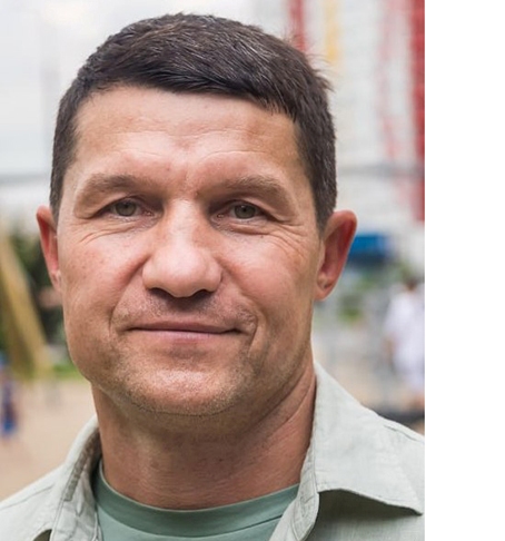 Виталий Васильев, один из жильцов, наблюдает за тем, как его шестилетний сын играет в песке и качается на качелях. Рассказывает, что ребенку очень нравится такая форма развлечений.