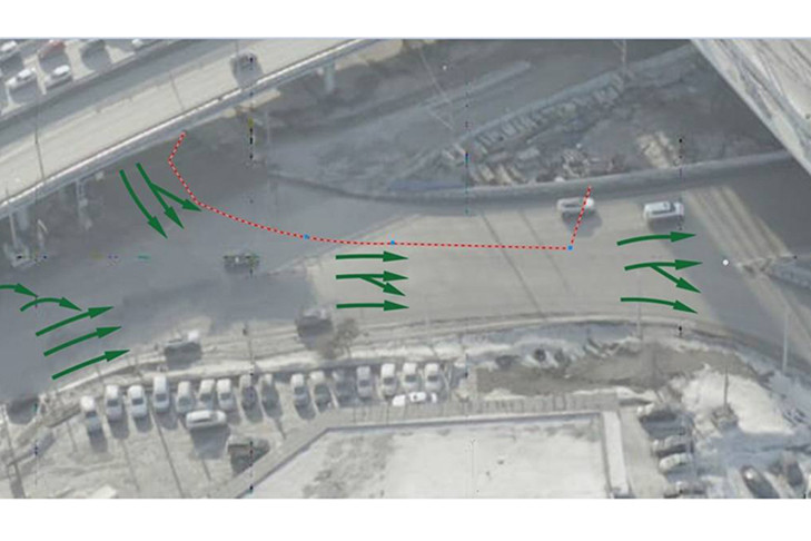 «Схема движения транспортных средств изменится на участке ул. Большевистской в районе СТС-Авто («Мерседес центр») по направлению: «Речной вокзал» — Красный проспект, ул. Фабричная, ул. Ипподромская. А также по направлению выезда из-под путепровода в сторону ул. Ипподромской и Красного проспекта путем сужения проезжей части на две полосы», — сообщили в управлении дорожного комплекса.