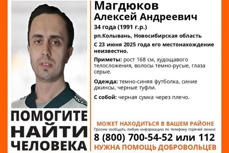 Любую информацию о местонахождении Алексея Магдюкова просят сообщать по телефону горячей линии 8-800-700-54-52 или 112. Требуется помощь добровольцев.