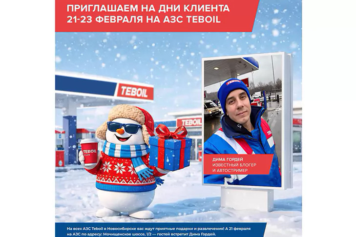Главная площадка «Дня клиента» развернётся на АЗС по адресу Мочищенское шоссе, 1/2. Гостей ждёт насыщенная программа для всей семьи: конкурсы и викторины с призами, розыгрыши, специальные предложения и приятные сюрпризы. Посетители смогут получить фирменный мерч, а также премиальное масло Teboil Diamond Carat III лично из рук Димы Гордея.