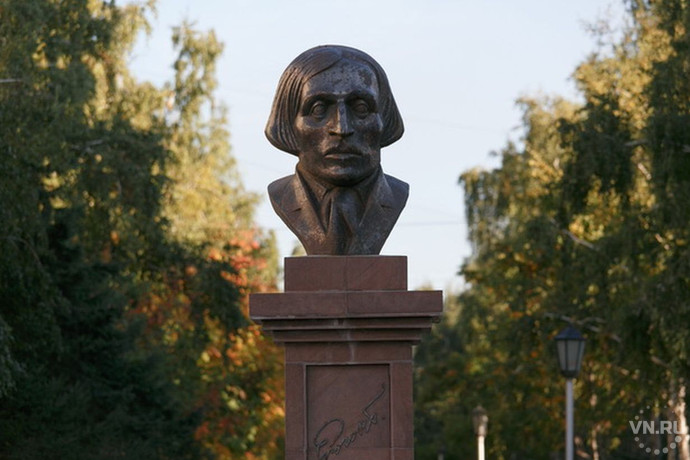В 2009 году на аллее, где улица Гоголя пересекает Красный проспект, установили чугунный бюст классика. Уже при его открытии прохожие удивлялись новому произведению скульптора: мол, нос не очень похож, да и выражение лица у Николая Васильевича странное. Вскоре с бюстом случился казус – его зацепила неосторожная поливальная машина, да так сильно, что голову автора «Мертвых душ» вместе с постаментом пришлось отправлять в ремонт. Все же помнят, что Гоголь – мистический писатель с беспокойной и противоречивой судьбой. Неслучайно в непосредственной близости от начала улицы стоят цирк в гиперболической «фуражке» и церковь с золотыми куполами – черти и ангелы рядом.