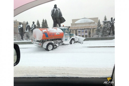 Борьба со снегом закончилась у постамента памятника Ленину в самом центре Новосибирска. Однако эта сценка – лишь малая часть того, что сейчас творится в столице Сибири. Пробки и десятки ДТП по всему городу показывает «Яндекс».