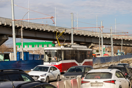 По новому маршруту трамваи начали ходить с понедельника, 27 апреля — в Новосибирске открыли самую длинную в России 632-метровую эстакаду.
