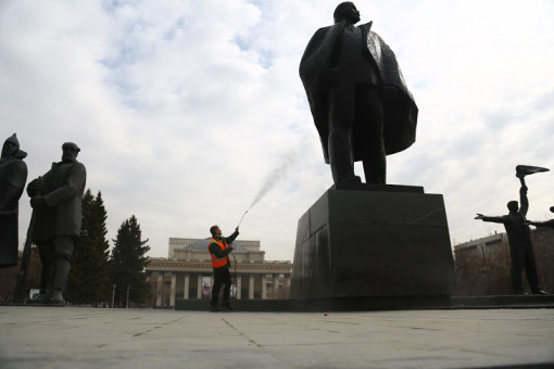 Новосибирских школьников учат маршировать к параду 9 Мая на площади Ленина
