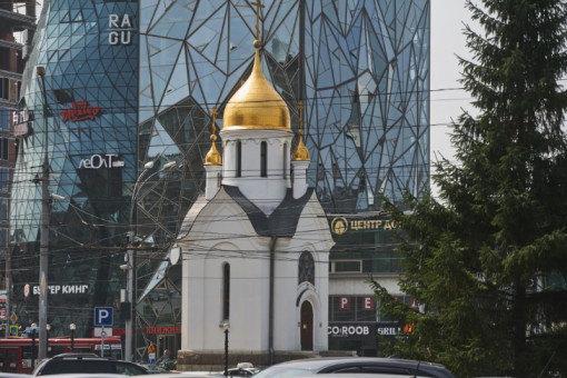 Ремонтные работы в часовне во имя Святого Николая Чудотворца на Красном проспекте продлятся до декабря. Пока что один из символов Новосибирска отгородили забором.