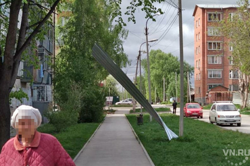 Порыв ветра сдул лист металлопрофиля с крыши многоэтажного дома в Бердске. Острая конструкция буквально вонзилась в землю, чудом не задев никого из прохожих.