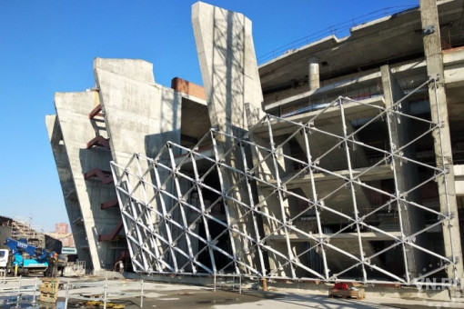 В основном секторе новой ледовой арены в Новосибирске начался монтаж уникальных витражей. Работы идут в соответствии с графиком.