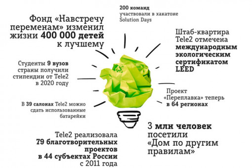 Tele2, альтернативный оператор мобильной связи, подводит итоги работы в области корпоративной социальной ответственности за 2020 год. Клиенты пользовались новыми продуктами компании во время самоизоляции, социальные предприниматели в регионах получали помощь для сохранения своего дела, люди могли работать и учиться в привычном режиме, ведь Tele2 развивала сеть в местах незапланированной миграции трафика. Старшее поколение обучалось цифровым сервисам вместе с оператором, что стало особенно актуальным в эпоху перехода услуг в онлайн из-за пандемии.