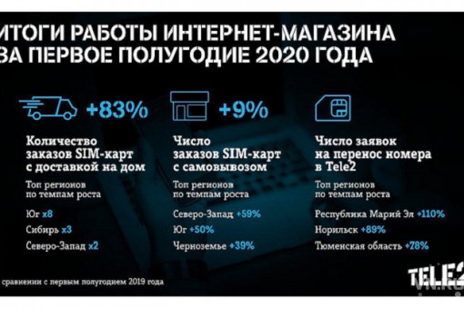 Tele2, альтернативный оператор мобильной связи, проанализировал работу интернет-магазина за первое полугодие 2020 года. В этот период число заказов SIM-карт с доставкой на дом увеличилось на 83%. Чаще всего эту возможность использовали абоненты Юга, Сибири, а также Северо-Запада.