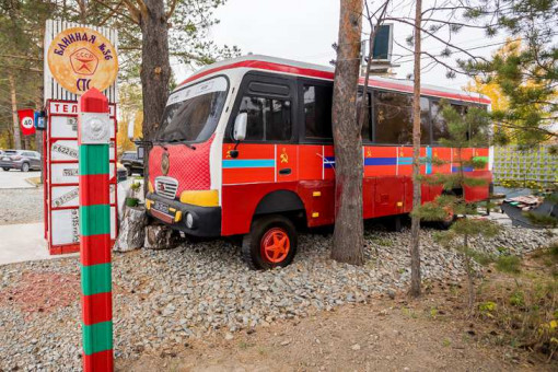 Старый автофургон стал раритетной блинной на выезде из Новосибирска. Самовары и подстаканники дополнили коллекциями советских монет и бюстами вождей. Как рассказал VN.ru хозяин заведения, интерьер атмосферного места собрали на Авито.