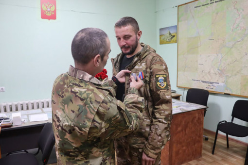 Житель Коченевского района Новосибирской области Максим Кружалов удостоен медали «За отвагу». Награду участнику специальной военной операции вручил военный комиссар Коченевского и Колыванского районов Евгений Жарков.