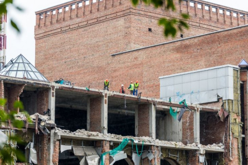 Снос недостроенного дома культуры на площади Маркса близится к своему завершению. Накануне в сети появилось видео, как рушатся его последние конструкции.