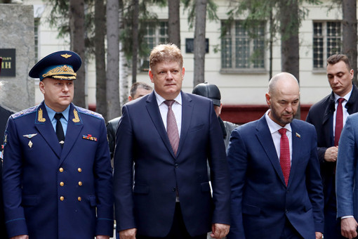 Губернатор Новосибирской области накануне возложил цветы к бюсту первого в истории нашего государства дважды Героя России Михаила Гудкова на Аллее Героев НВВКУ и к Мемориалу «Выпускникам училища – Героям Отечества».