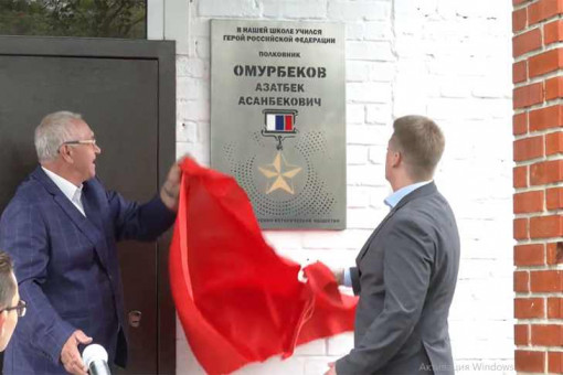 Торжественный митинг в пятницу, 15 июля, состоялся во дворе лицея №2 в Купино Новосибирской области. Здесь на входе открыли памятную доску Герою РФ Азату Омурбекову. Сам Герой на митинге присутствовать не смог.