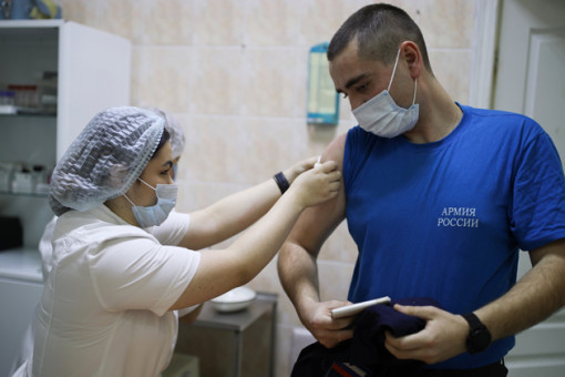 На территории Новосибирского гарнизона командованием воинских частей с привлечением медицинского персонала военных медицинских учреждений проводится вакцинация военнослужащих и лиц гражданского персонала от COVID-19.