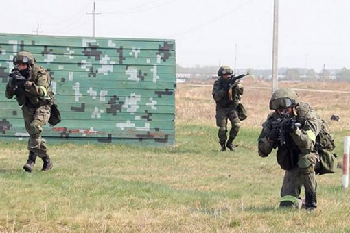 В антитеррористическом учении было задействовано более 200 военных, вооруженных автоматами АК-12, серийное производство которых началось только в прошлом году.