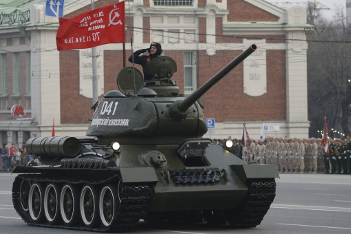 Вечером 7 мая на площади Ленина в Новосибирске прошла генеральная репетиция парада Победы. Торжественное прохождение воинских колонн и боевой техники начнется 9 мая в 10 часов утра.