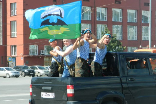 «Никто, кроме нас», «За ВДВ», «Войска дяди Васи»: флаги с парашютом между двух самолетов и голубые береты заполонили Центральный парк днем 2 августа. В фонтанах Новосибирска никто не купается и не разбивает кирпичи головой. Десантники отмечают свой праздник в компании сослуживцев и вспоминают армейские байки.