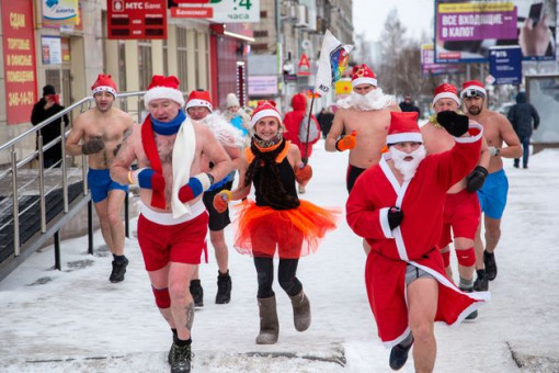 Традиционный забег моржей в новогодних костюмах с последующим окунанием в прорубь прошел в Новосибирске 22 декабря. Десяток мужчин в красных колпаках и несколько женщин пробежали по левому берегу Новосибирска, угощая прохожих конфетами, после чего массово нырнули в ледяную воду озера Блюдце на Горской.
