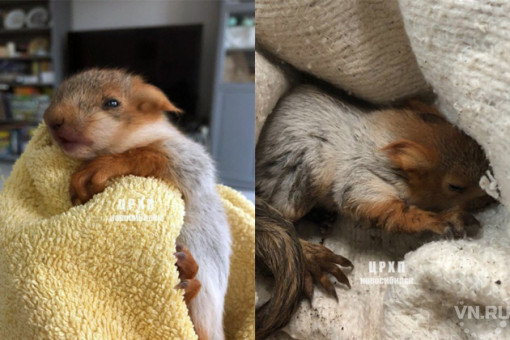 Упавший в холодную лужу крохотный бельчонок едва не стал обедом для кошек и ворон, но звереныша вовремя подобрали добрые жители Новосибирска. Фотографии малыша, укутанного в махровое полотенце, разошлись по Сети.