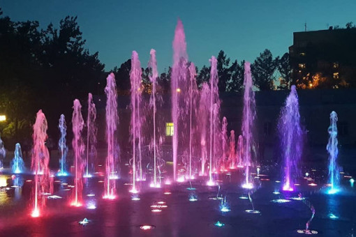 Новый светомузыкальный фонтан без чаши в тестовом режиме показали первым лицам города, остальные новосибирцы смогут увидеть сухой фонтан стоимостью почти 100 млн рублей на следующей неделе. Диаметр фонтана – 18 метров, высота струй – 10 метров.