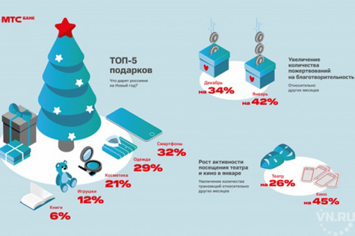 Вероятность получить в подарок на Новый год смартфон выше, чем книгу. К такому выводу пришли аналитики МТС Банка. Что предпочитают дарить новосибирцы и каких подарков ожидать в этом году?