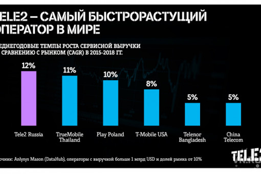 Tele2, альтернативный оператор мобильной связи, является одним из быстрорастущих зрелых операторов в мире. Заключение сделано на основе банка данных Analysys Mason – международной компании, которая специализируется на консалтинговых услугах в телекоммуникациях и медиа. В 2015-2018 гг. Tele2 демонстрировала среднегодовые темпы роста сервисной выручки в номинальном выражении относительно рынка в 12%, что выводит компанию в число лидеров по динамике среди мировых операторов.