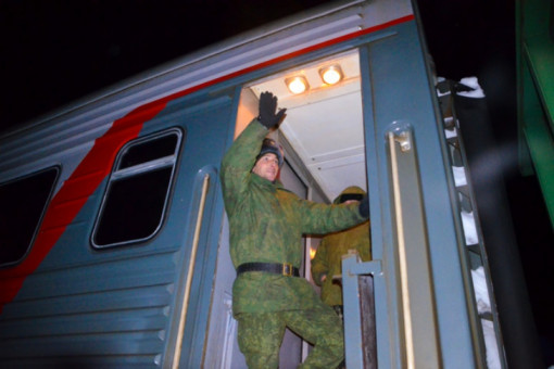 Жители Барабинска устроили теплую встречу новосибирским мобилизованным. Ночью, 18 января военный эшелон сделал остановку на вокзале районного центра.