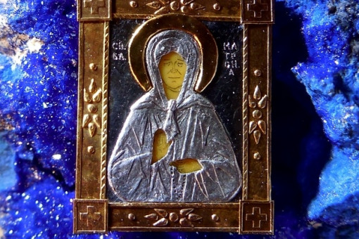 Уменьшенную копию иконы Матроны Московской показал известный новосибирский микроминиатюрист Владимир Анискин. Лик святой выполнен из золота, слоновой кости, акварели и олова, размер иконы 6,8х8мм.