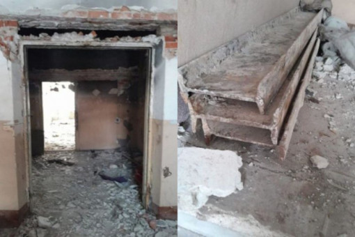 Металлические двутавры вырвали вандалы из оконных и дверных проемов типографии газеты «Красноармейская звезда» на улице Тополевой. Без несущих конструкций историческое здание может обрушиться, заявляют местные жители.