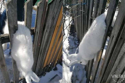 Минувшие выходные многие горожане провели на дачах в предсезонных хлопотах. Житель Новосибирска Александр Тонких тоже посетил свою фазенду впервые с января этого года и был весьма удивлен, обнаружив в заборе белоснежного зайца. Животное к приезду Александра, увы, погибло.