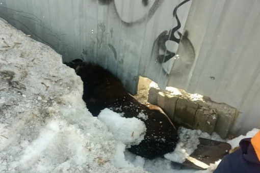 Вызволять попавшие в беду животное пришлось спасателям. Самостоятельно выбраться собака не могла.