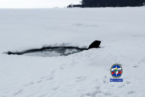 Тонущую собаку на Обском водохранилище обнаружил местный рыбак. Сибиряк позвал на мощь спасателей.