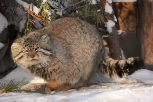 Манул по кличке Зеленогорск вышел на снежную прогулку в своем вольере в Новосибирском зоопарке и стал героем нового видеоролика.