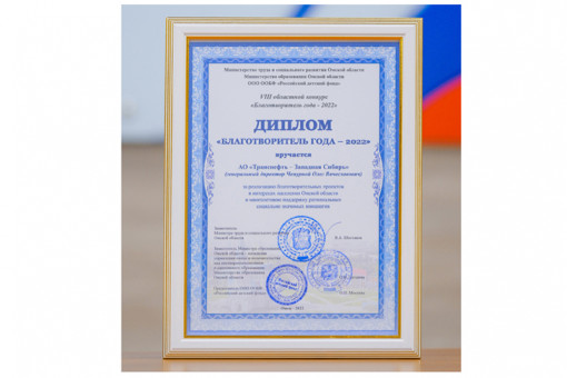 Нефтетранспортное предприятие отмечено дипломом победителя VIII областного конкурса «Благотворитель года». Торжественная церемония награждения состоялась в г. Омске. Компания признана победителем в номинации «За реализацию благотворительных проектов в интересах населения Омской области и многолетнюю поддержку региональных социально значимых инициатив».
