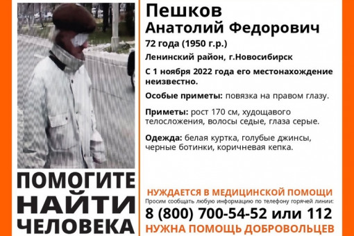 Информация о поиске 67-летней женщины из Ленинского района Новосибирска появилось днем, 12 ноября, в группе «ЛизаАлерт» во ВКонтакте. Местонахождение женщины неизвестно с 7 ноября 2022 года.